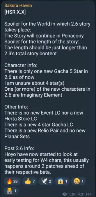 Bocoran lain juga ditampilkan oleh ‘Sakura Haven’ lewat postingan di Reddit bahwa Honkai versi terbaru ini akan menawarkan Trailblazer ke dunia Penacony. Dan tentunya dengan durasi cerita yang cukup panjang.